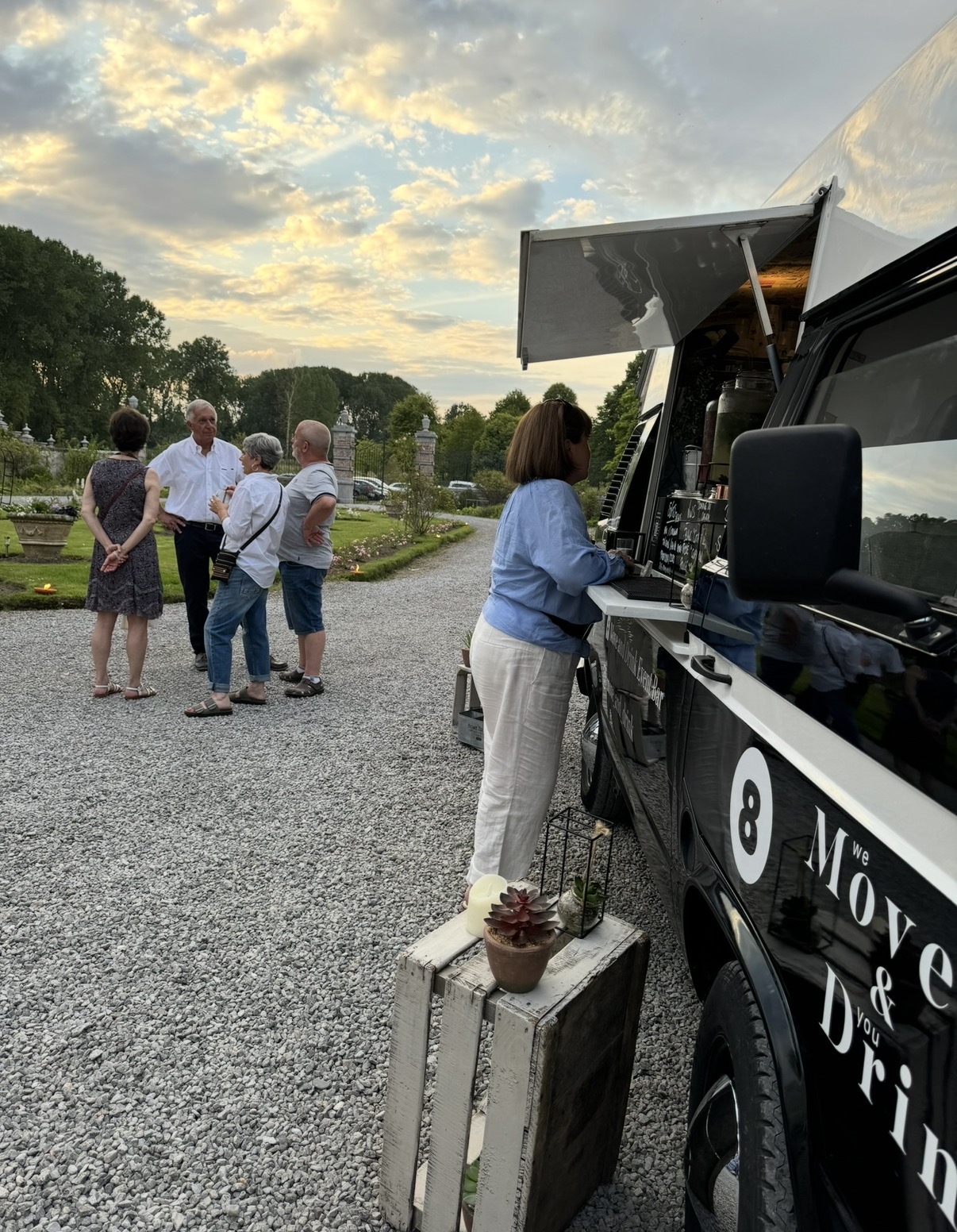 À l’occasion d’une garden party organisée à la campagne, Move & Drink a installé son van bar en plein cœur de l’événement, créant un point central à la fois pratique et convivial.