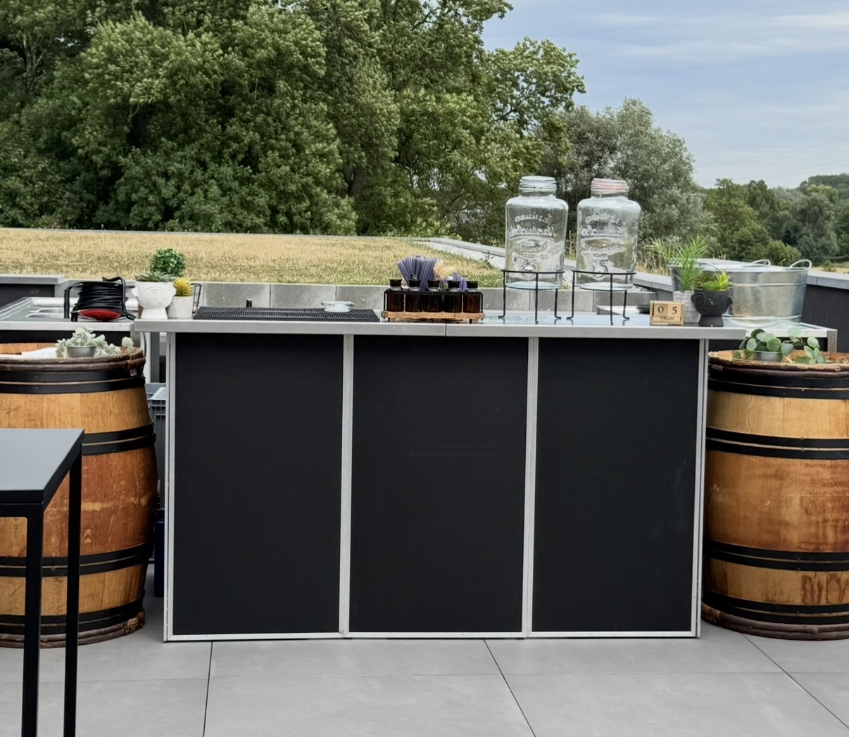 L’objectif était de proposer un bar discret, élégant et parfaitement intégré à l’environnement, tout en assurant un service fluide tout au long de la réception. Le module s’adapte facilement à ce type de configuration et permet de créer un véritable point central sans dénaturer le lieu.